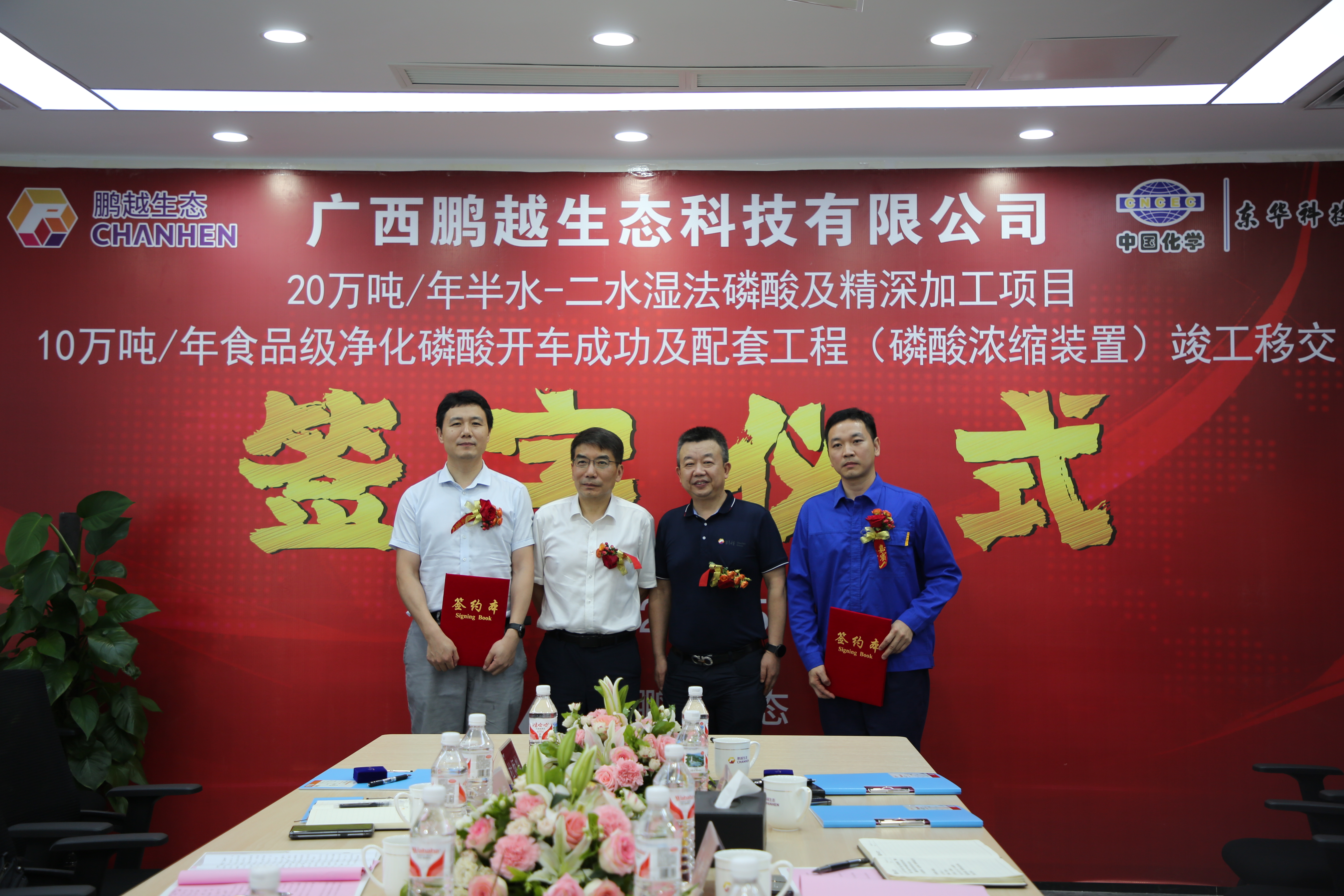 5月22日,由中国化学MK官方网站_MK(中国)总承包的广西鹏越生态科技有限公司20万吨/年半水-二水湿法磷酸及精深加工项目10万吨/年食品级净化磷酸及配套工程(以下简称“广西鹏越项目”)举办了竣工移交签字仪式,标志着项目顺利通过竣工验收。