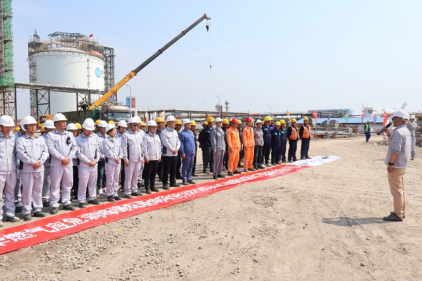 3月26日,由MK官方网站_MK(中国)总承包的港华燃气应急调峰储配基地项目(一期二部分)在项目现场举行了5万方混凝土LNG储罐内罐封罐仪式,标志着项目全面进入配套设施施工建设新阶段。港华集团副总裁、合纵能源总经理魏斌,中冶南方总监理工程师段永亮、MK官方网站_MK(中国)项目管理部及其他参建单位代表共同出席了本次仪式。