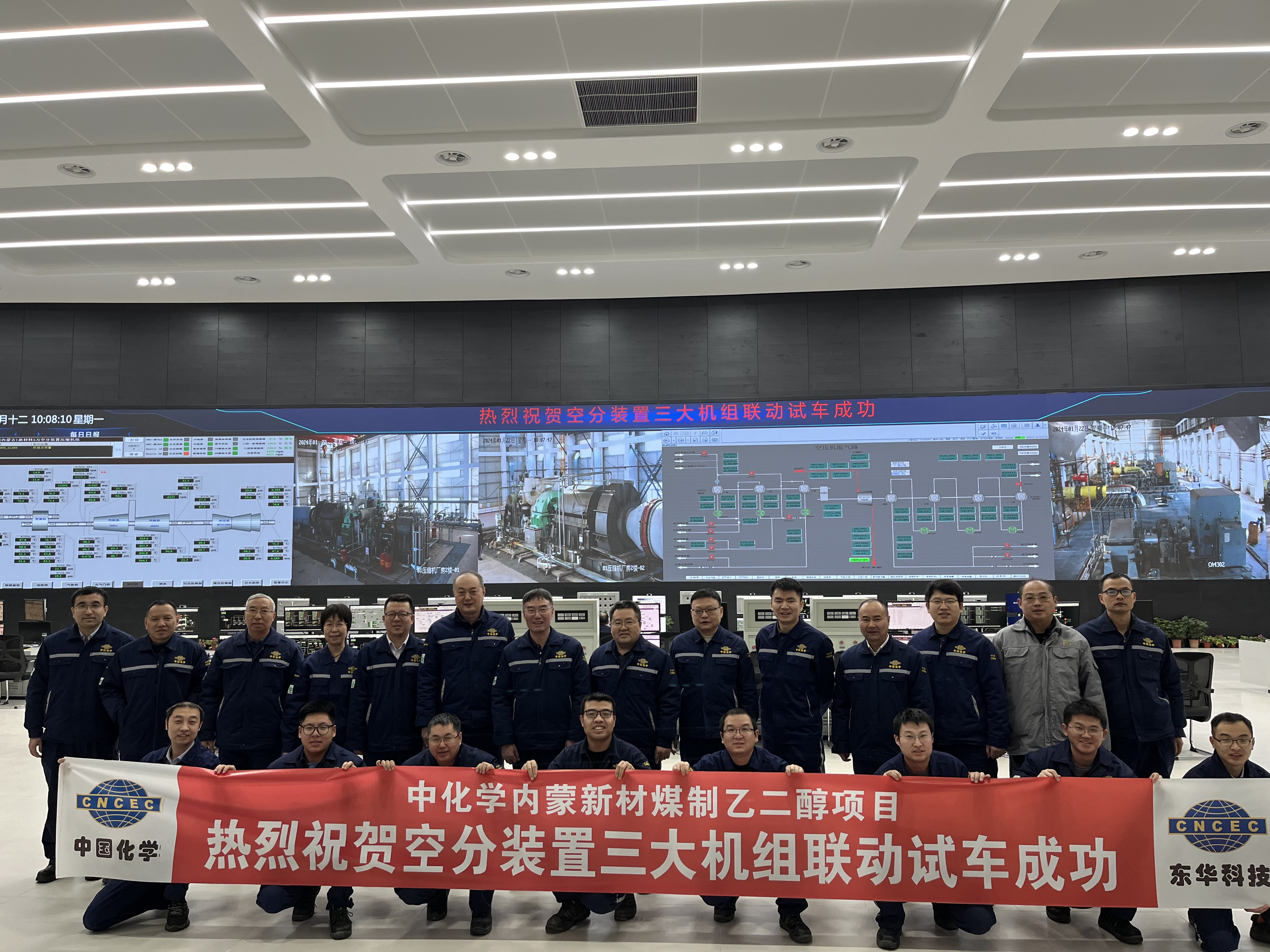 1月21日,中化学内蒙新材煤制乙二醇项目空分装置三大机组联动试车成功,空压机组达到额定转速,各机组系统运行平稳,标志着空分装置进入开车倒计时阶段。