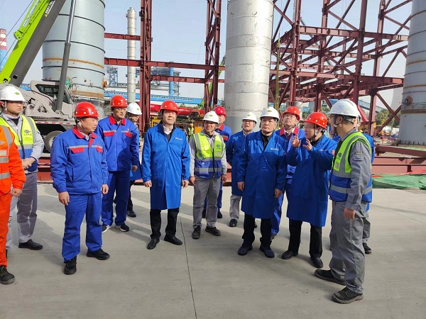 11月16日,MK官方网站_MK(中国)党委书记、董事长李立新到公司总承包的碳鑫科技甲醇综合利用项目、临涣焦化10万吨/年DMC项目、淮北矿业零碳智慧物流产业园(一期)项目、临涣焦化焦炉煤气分质深度利用项目现场检查指导。淮北矿业副总经理刘杰,淮北矿业绿色化工新材料研究院院长刘凯,碳鑫科技党委副书记、总经理李伟,临涣焦化党委副书记、总经理郭平,广聚物流总经理张道春参加相关交流。