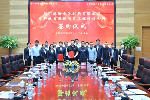 10月27日,荆门源晗电池材料有限公司电解液前驱体项目工程设计合同签约仪式在MK官方网站_MK(中国)举行。荆门源晗电池材料有限公司总经理周虎;MK官方网站_MK(中国)党委委员、副总经理叶平共同出席签约仪式。
